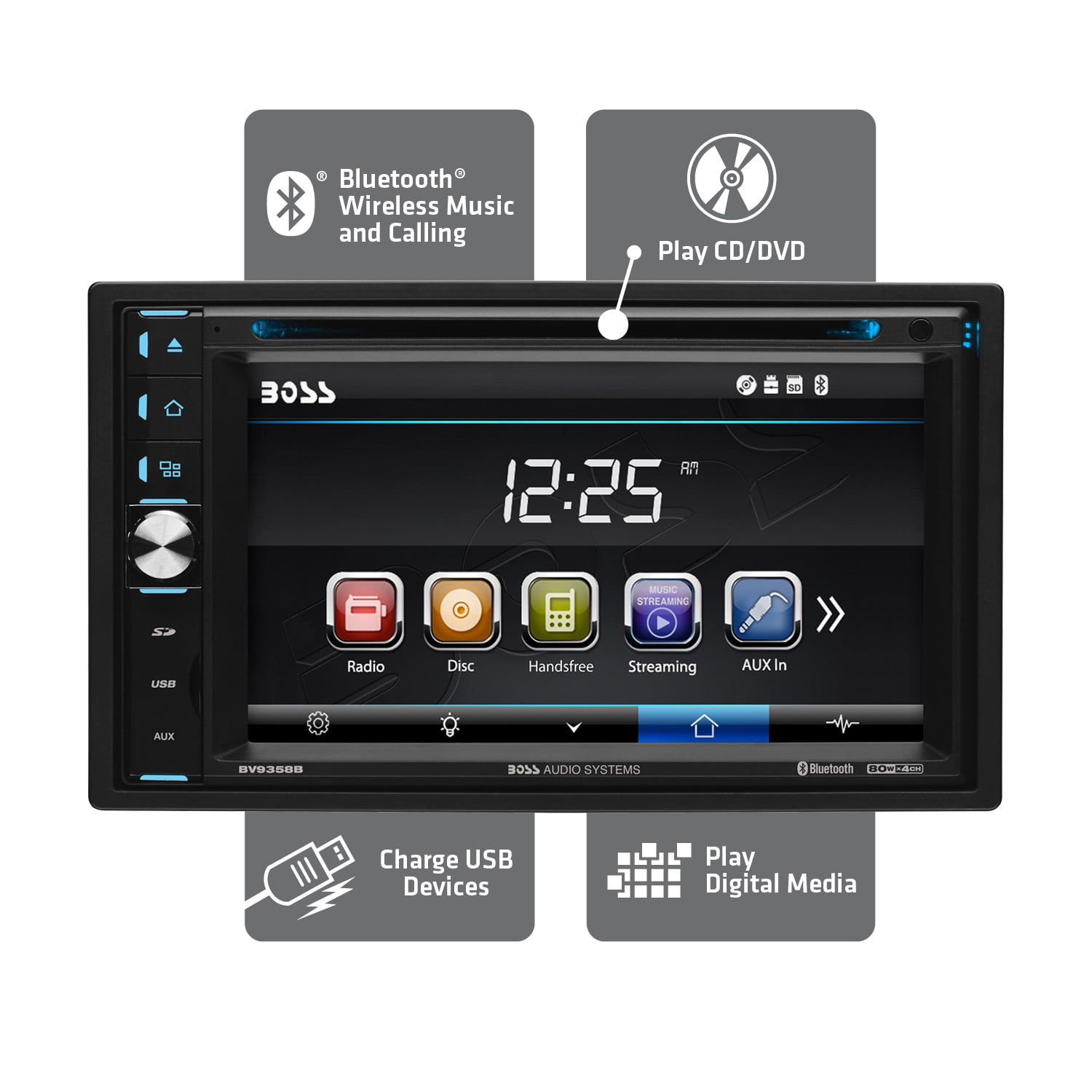 Amazon Com Boss Audio Systems Bvb9358rc Car Stereo System 6 2 Inch Double Din Touchscreen Bluetooth Audio And Calling Head Unit Aux In Usb Sd Cd Player Am Fm Radio Receiver Backup Camera